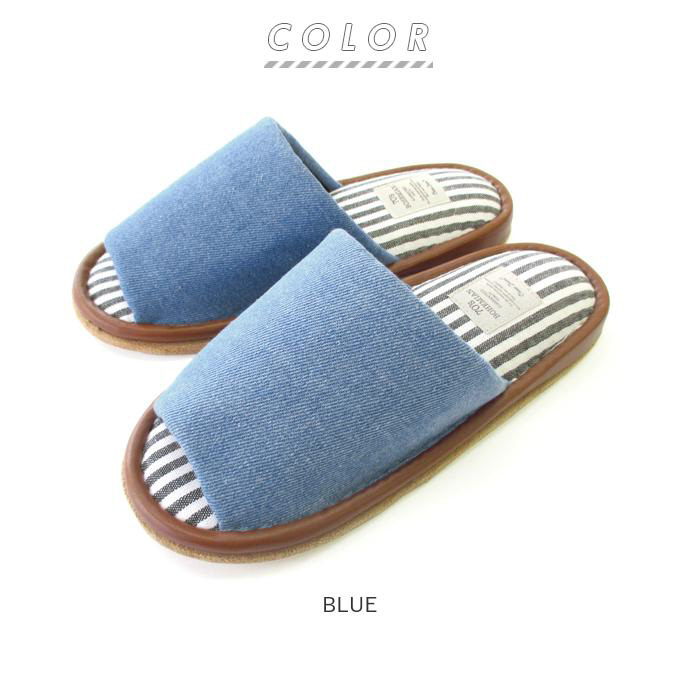 ■デニム生地と中敷の爽やかなストライプが相性抜群なスリッパが登場。