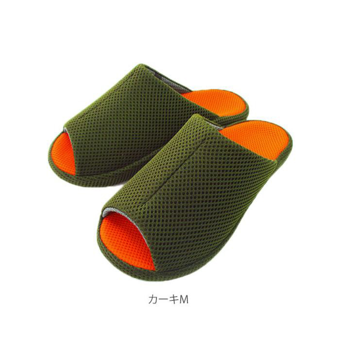 メッシュタイプの、足に優しい3次元構造のソールで安定させたスリッパです。