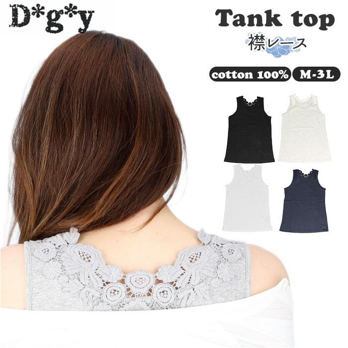 dgy デコカンパニー コットン100% 襟レースタンクトップ LLサイズ ブラック