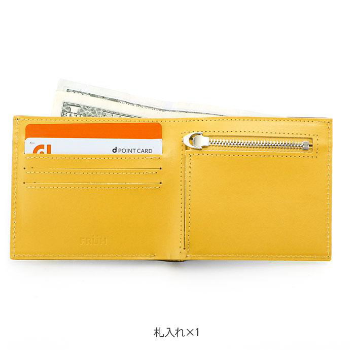 ■札入れ×1 ファスナー式小銭入れ×1 カード入れ×4 の、充分な収納力。