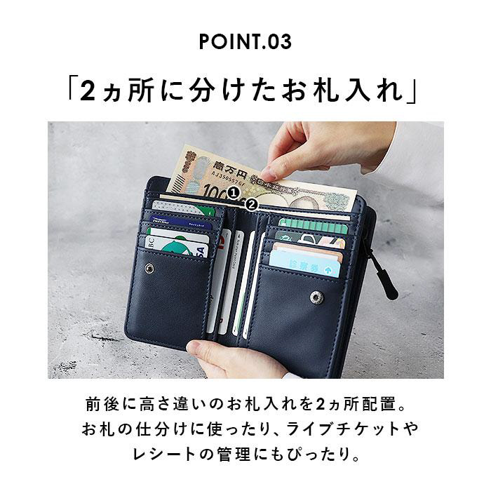 ■背面側のL字ファスナー式小銭入れは2スペース仕様。