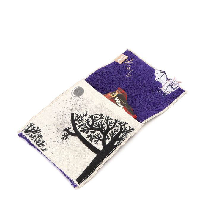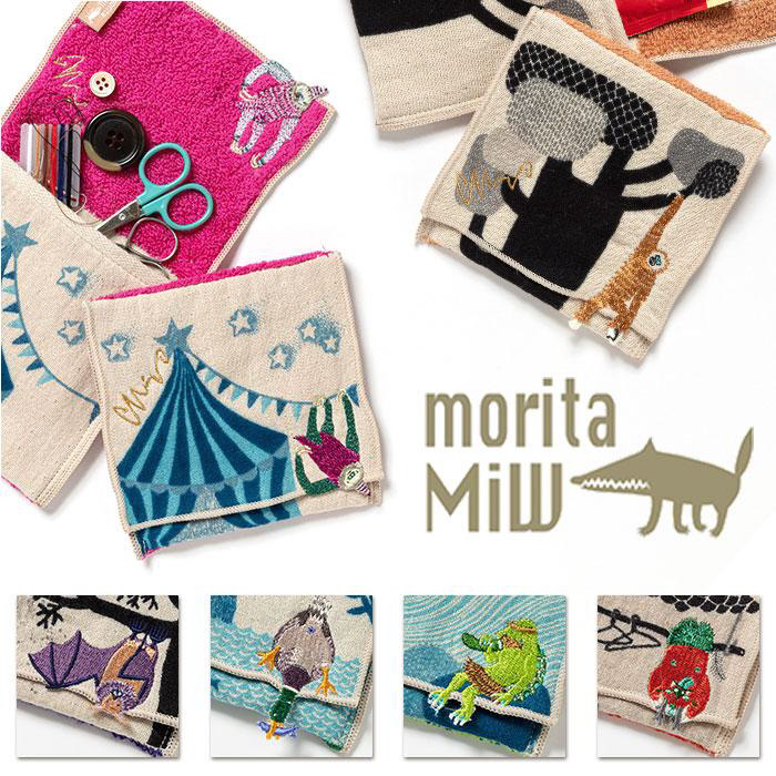 挿絵画家、森田MiW×タオルメーカー楠橋紋織のコラボブランド「moritaMiW」のポーチハンカチが新登場。