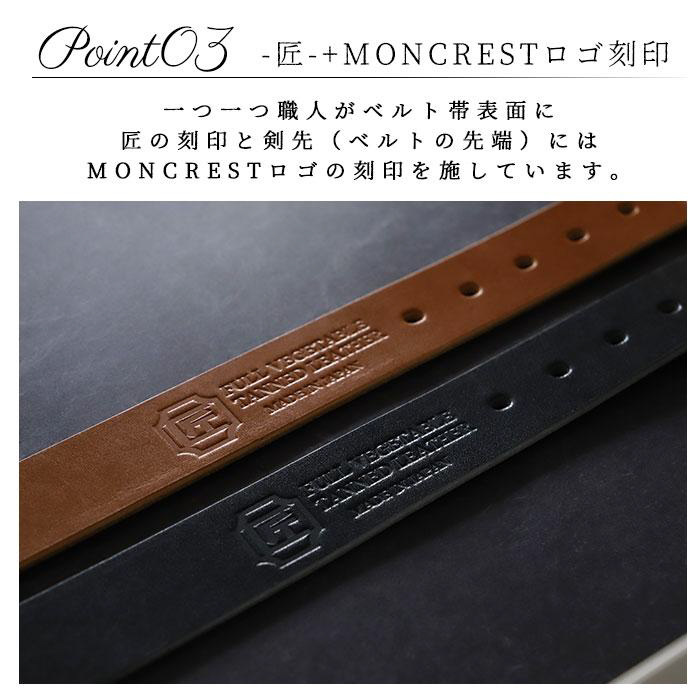 ベルト専門店「MONCREST」の栃木レザーベルトが登場!ベルト帯の素材には、日本最高峰の品質と言われる栃木レザーを使用。