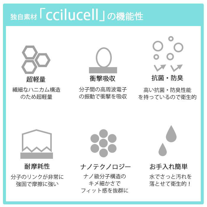 ■ナノ級分子構造のキメ細かさでフィット感が抜群独自開発素材のccilucell(チルセル)で本体を覆い、ツヤをだして高級感のある質感に。