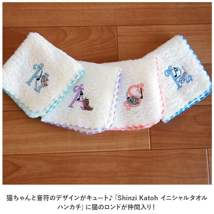 猫ちゃんと音符のデザインがキュート♪「Shinzi Katoh イニシャルタオルハンカチ」に猫のロンドが仲間入り!
