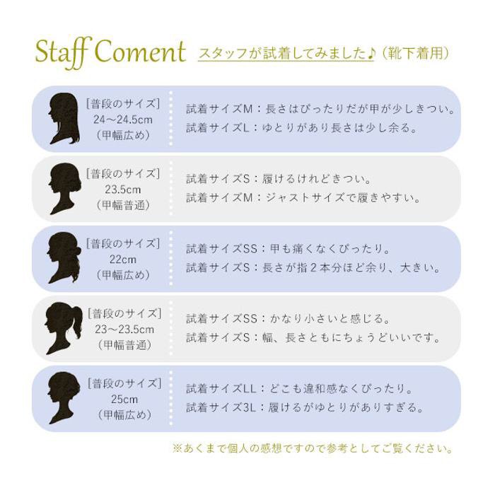 ・サイズ: [SSサイズ] 約22.5-23.0cm [Sサイズ] 約23.0-23.5cm [Mサイズ] 約23.5-24.0cm [Lサイズ] 約24.0-24.5cm [LLサイズ] 約24.5-25.0cm [3Lサイズ] 約25.0-25.5cm