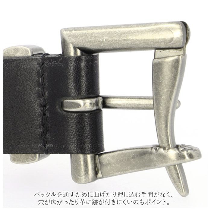 ■バックルを通すために曲げたり押し込む手間がなく、穴が広がったり革に跡が付きにくいのもポイント。