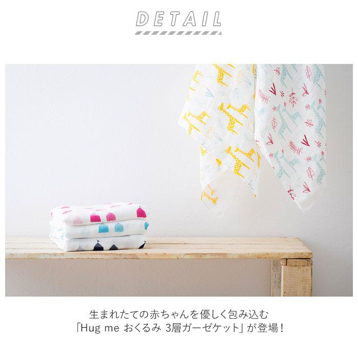生まれたての赤ちゃんを優しく包み込む「Hug me おくるみ 3層ガーゼケット」が登場!ふっくら柔らかいオーガニック糸を使い赤ちゃんや肌の弱いお子さんにも使える。