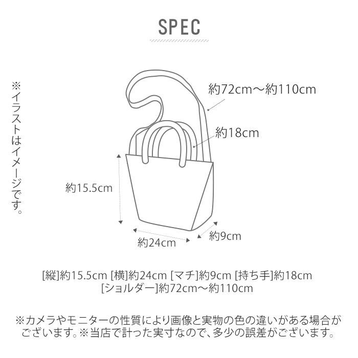 ・サイズ: [縦] 約15.5cm [横] 約24cm [マチ] 約9cm [持ち手] 約18cm [ショルダー] 約72cm〜約110cm