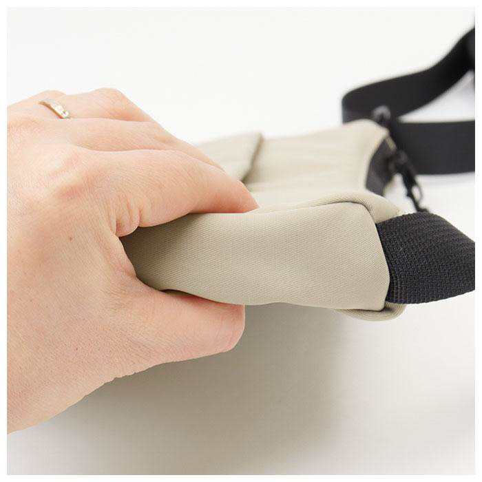 ■バッグの生地内側にクッション材を内蔵しているため、型崩れしにくく装着時の身体当たりがソフトなのも使いやすさのポイント。