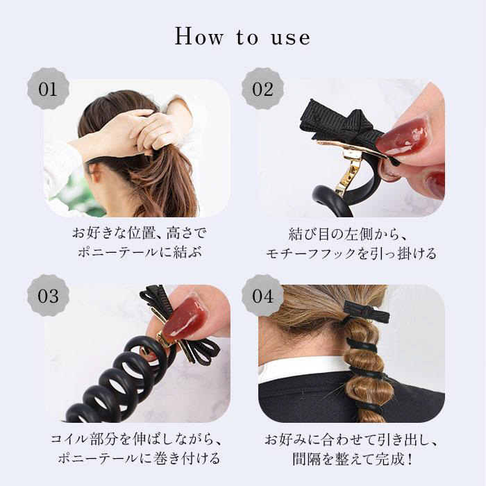 ■ヘアゴムで髪を結んだあとにフック部分を差し込み、そのままくるくる巻きつけるだけでOK!