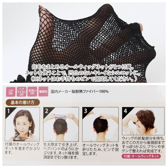 ■ネットで自毛をまとめたら、帽子のようにすっぽりとウィッグを被ってスタイリングするだけ!