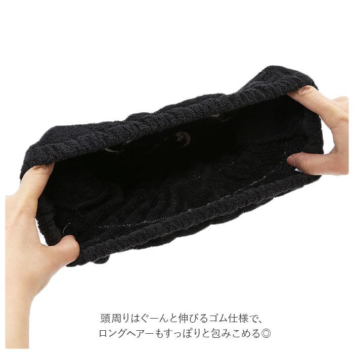 ■頭周りはぐーんと伸びるゴム仕様で、ロングヘアーもすっぽりと包みこめる◎