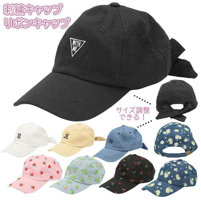 コットン100%素材。シンプル&スタンダードなシルエットにキュートさをプラスしたレディース刺繍キャップ&リボンキャップ。