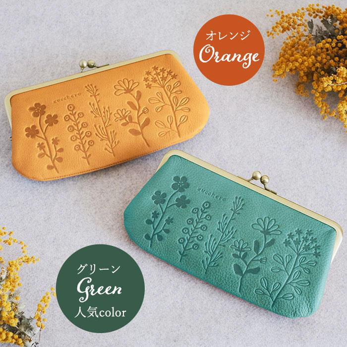 zucchero ズッケロ 花柄デザインがま口長財布 オレンジ
