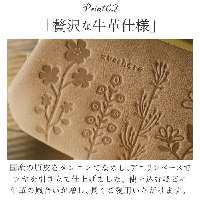 サライから、前面に花柄を型押ししたデザインが素敵なガマ口財布が登場。