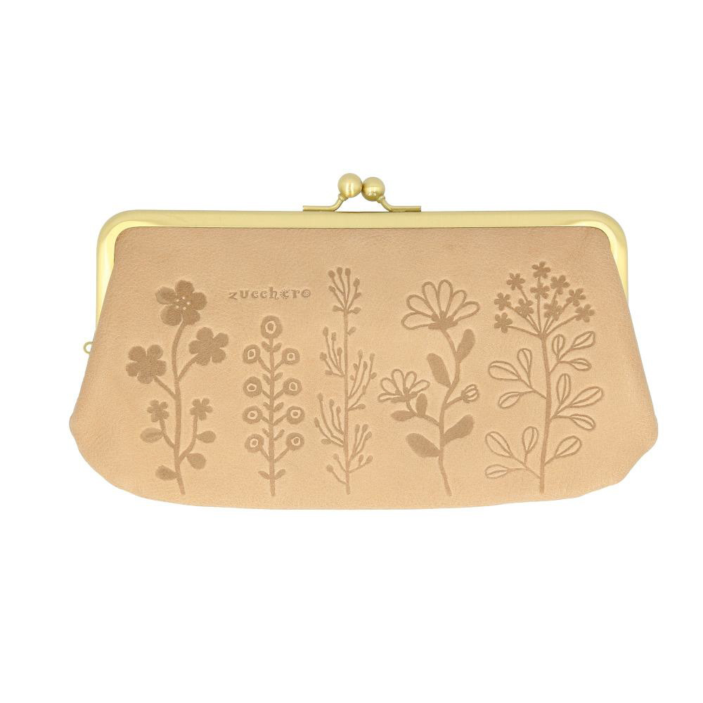 ■サライから、前面に花柄を型押ししたデザインが素敵なガマ口財布が登場。