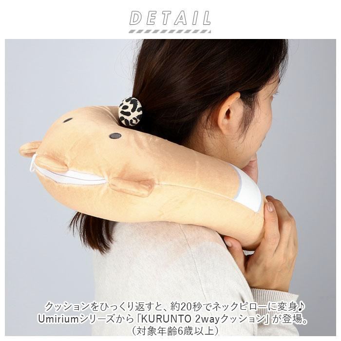 クッションをひっくり返すと、約20秒でネックピローに変身♪Umiriumシリーズから「KURUNTO 2wayクッション」が登場。