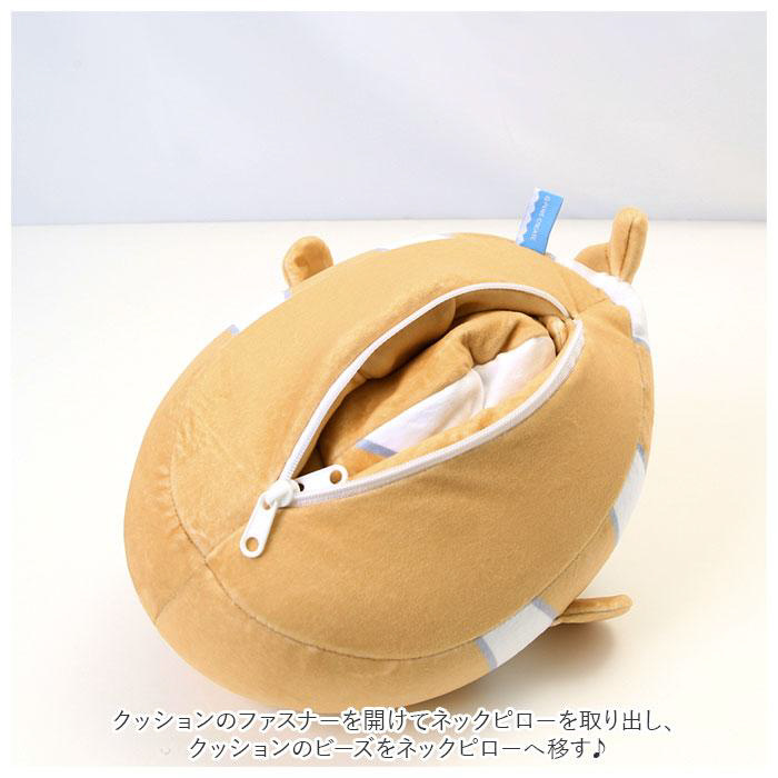 ■クッションを中に入れてファスナーを閉じるとネックピローに!