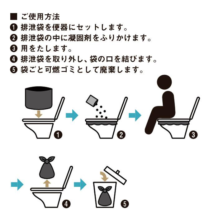 ■排泄処理はトイレに袋をセットし、抗菌性凝固剤を振りかけてから用を足すだけ!