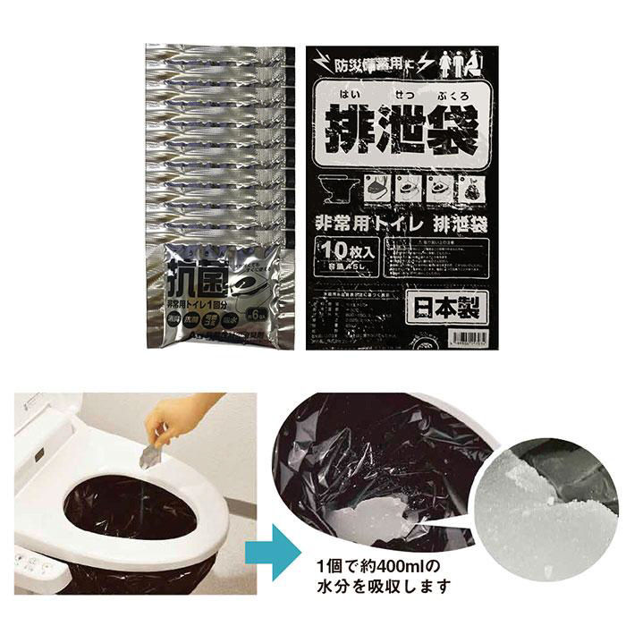 ■1個で約400mlの水分を吸収してくれる、心強い簡易トイレ。