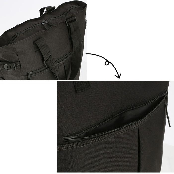 ■メインはファスナータイプで、中が見えず、荷物も安心して持ち運びできる。