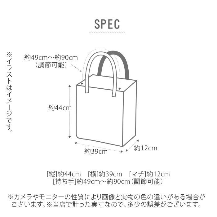 ・サイズ: [縦] 約44cm [横] 約39cm [マチ] 約12cm [持ち手] 約49cm〜約90cm(調節可能)