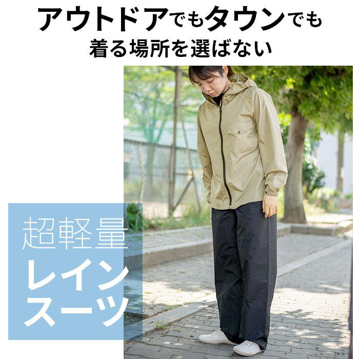 さりげないレインウェアセットアップ Sサイズ ベージュ/ブラック