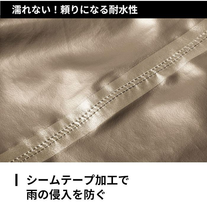 ■さらに縫製部分の裏側にシームテープ加工を施すことで雨の侵入を防ぐ作り。