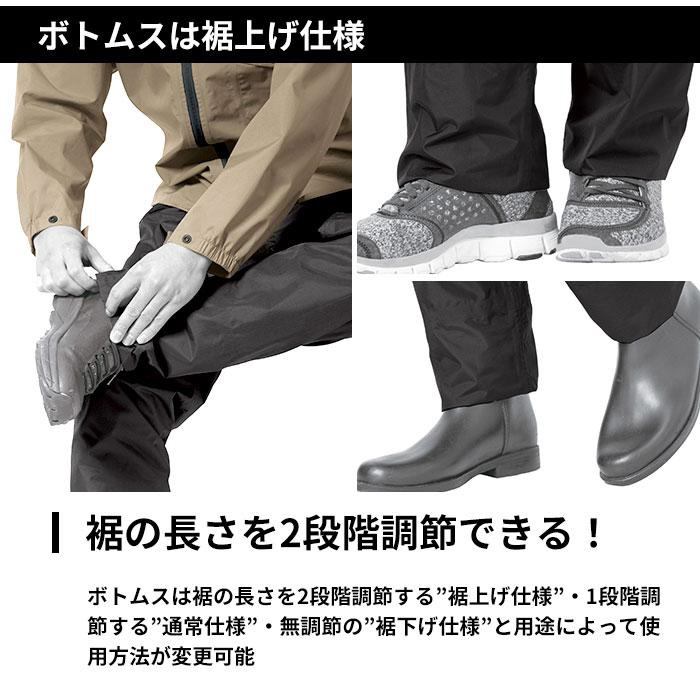 ■ボトムスは裾の長さを2段階調節する”裾上げ仕様”1段階調節する「通常仕様」無調節の「裾下げ仕様」と用途によって使用方法が変更可能。
