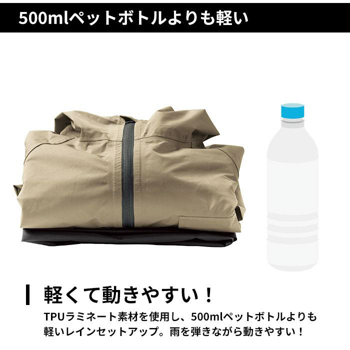■TPUラミネート素材を使用し、500mlペットボトルよりも軽いレインセットアップ。