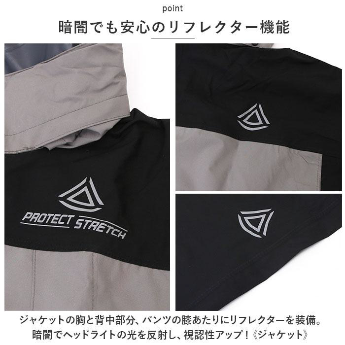 ■ジャケットの胸と背中部分、パンツの膝あたりにリフレクターを装備。