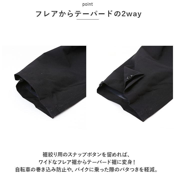 ■裾絞り用のスナップボタンを留めれば、ワイドなフレア裾からテーパード裾に変身!