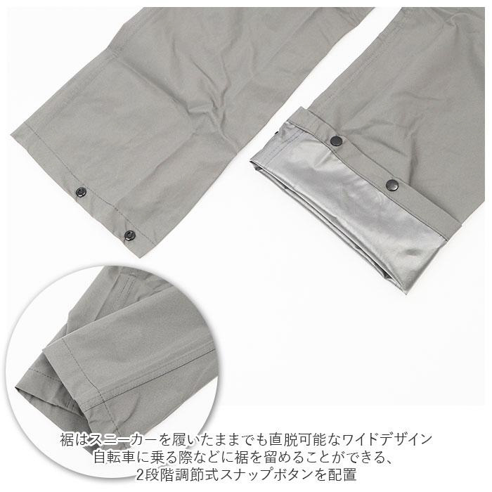 ■自転車に乗る際などに裾を留めることができる、2段階調節式スナップボタンを配置。