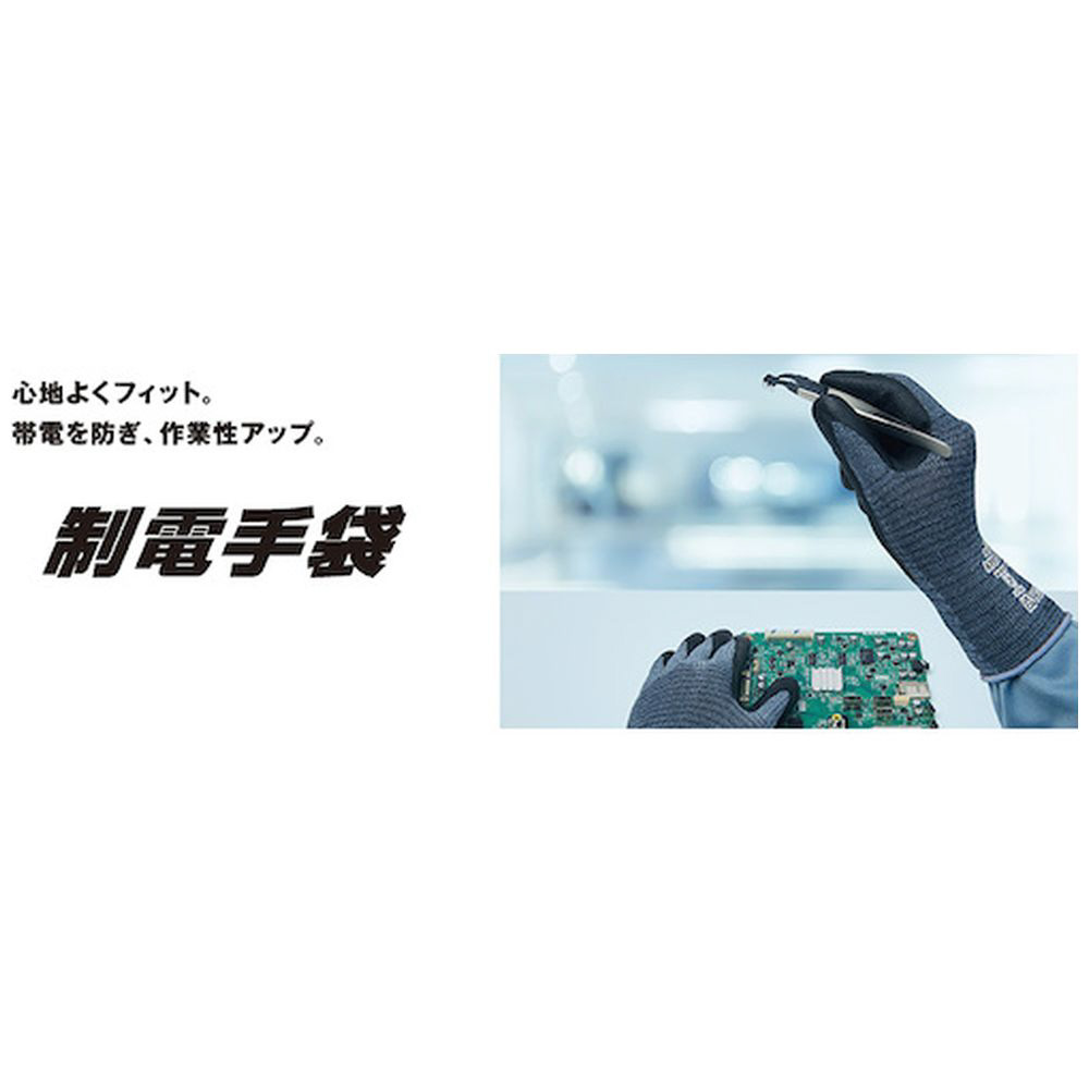 ■繊維部分とコーティング部分ともに導電性を有しているため、作業中の摩擦・接触による帯電を防ぎます。