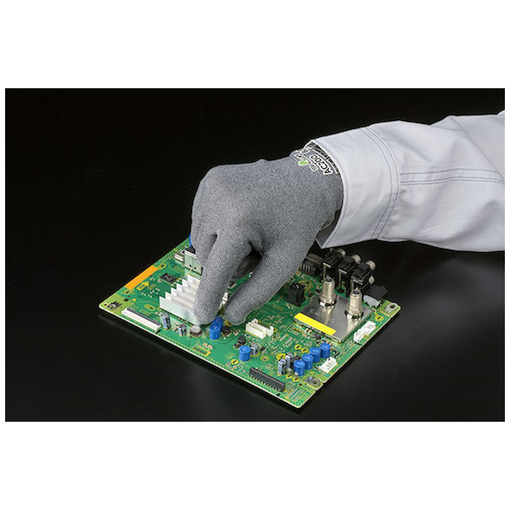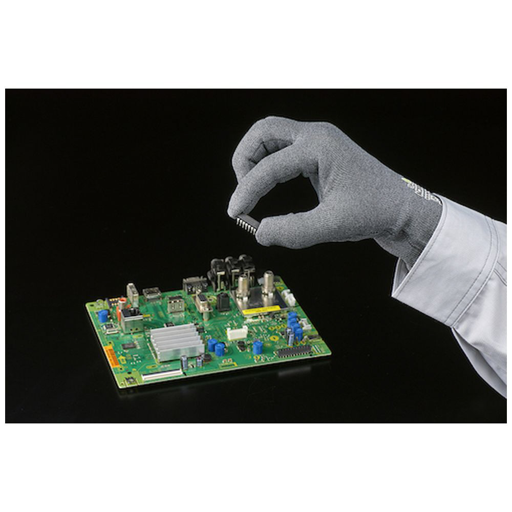 ■導電性があり、作業中の帯電を防ぐ制電手袋(静電気対策手袋)。手袋を着けたままタッチパネルが操作可能