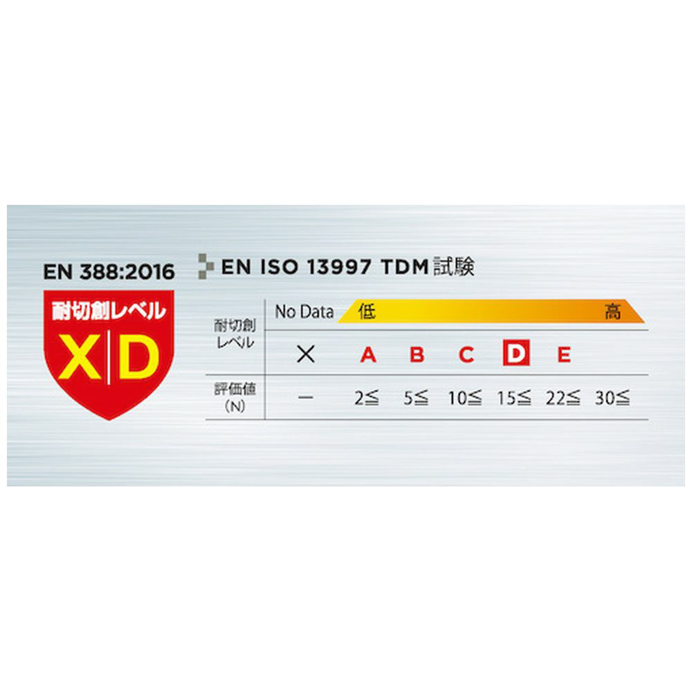 ・EN 388: 2016規格: 3X42D 耐切創レベル XD