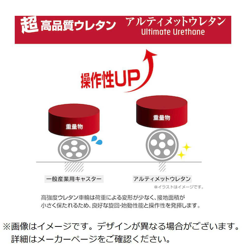■重量物でも極めて軽快に搬送できる「アルティメットウレタン車輪」を使用しています。