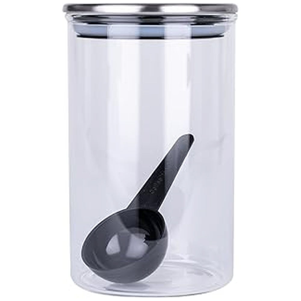 ステンレス製の蓋とガラスを組み合わせたスタイリッシュなキャニスターです。