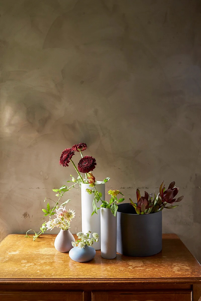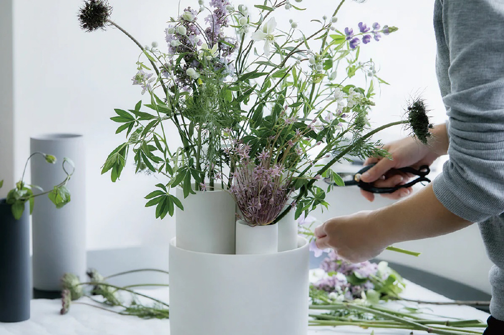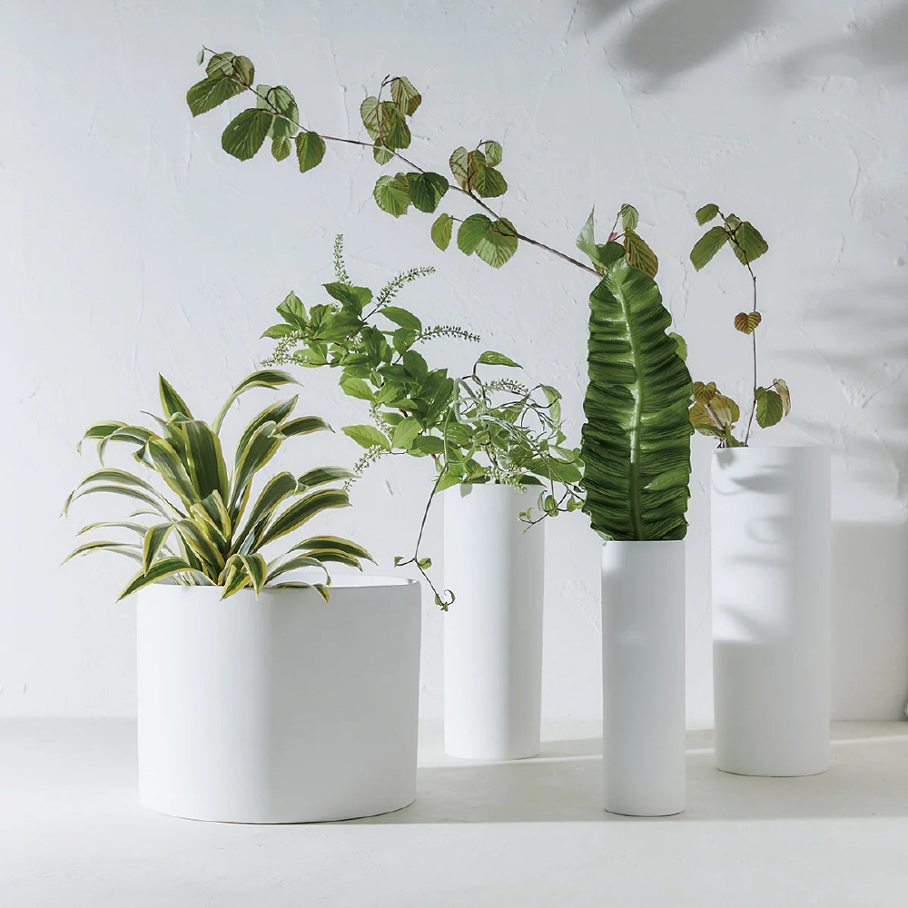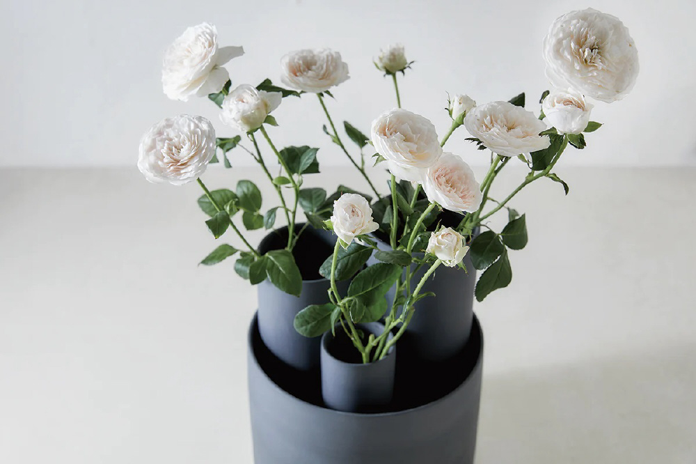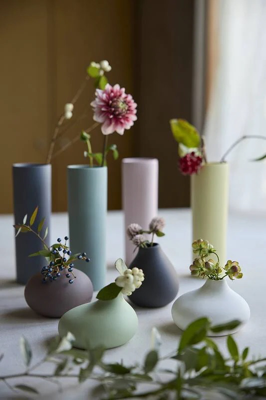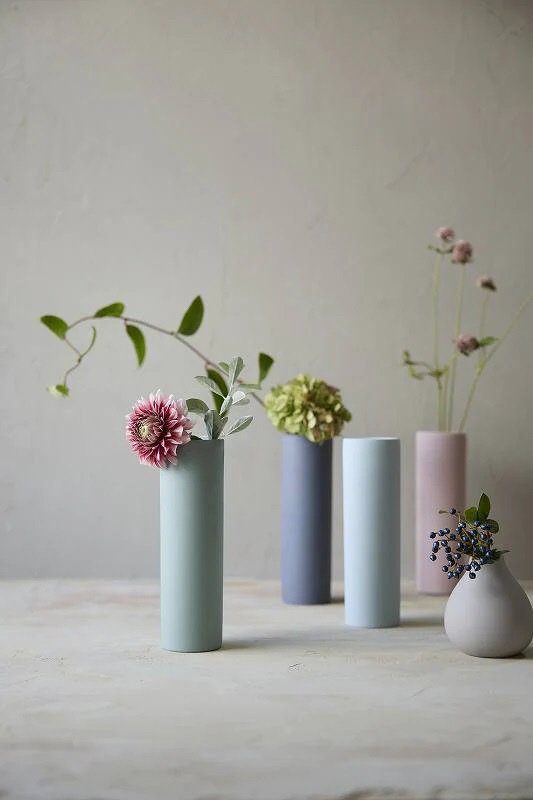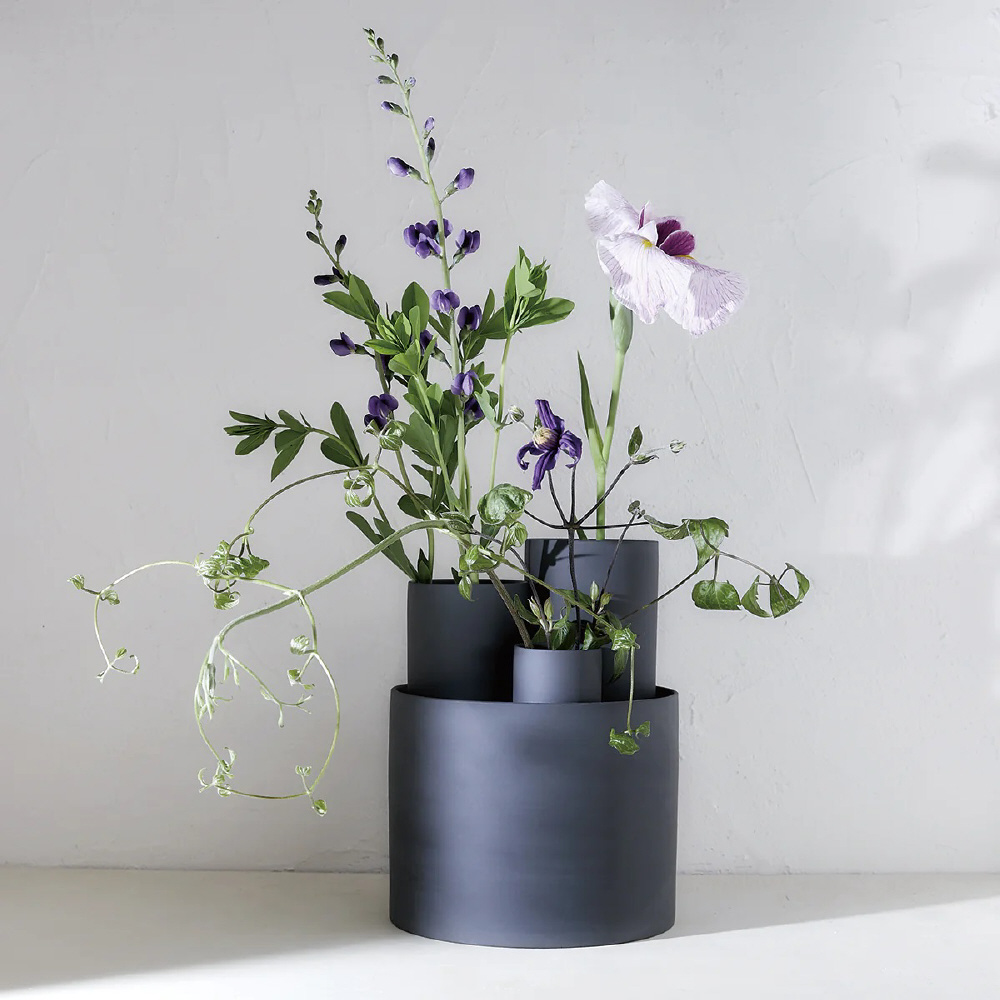 ■シンプルなシルエットのフラワーベースは、どんな植物とも好相性。単品使いは勿論、サイズ別を組み合わせて花を生ければ、よりボリュームのある佇まいとしても楽しめます。