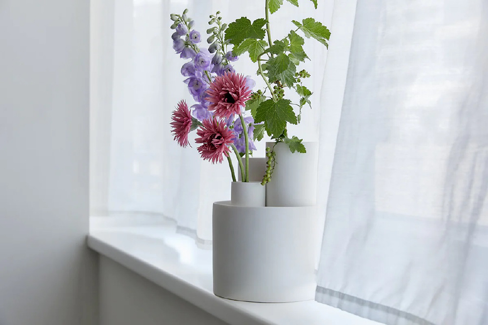 花のある暮らし、はじめよう。素材はマットな質感が特徴の陶器で、 水アカなどが目立ちにくいのも嬉しいポイントです。