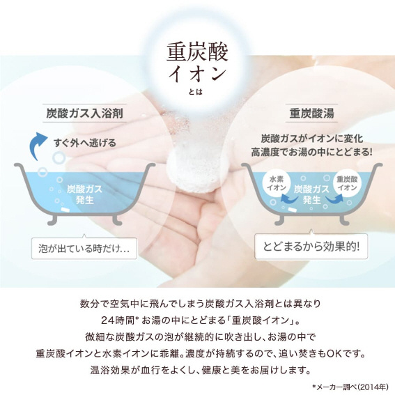 重炭酸イオンは24時間お湯の中にとどまるので、沸かしなおしたお湯でもしっかり効果を実感できます。
