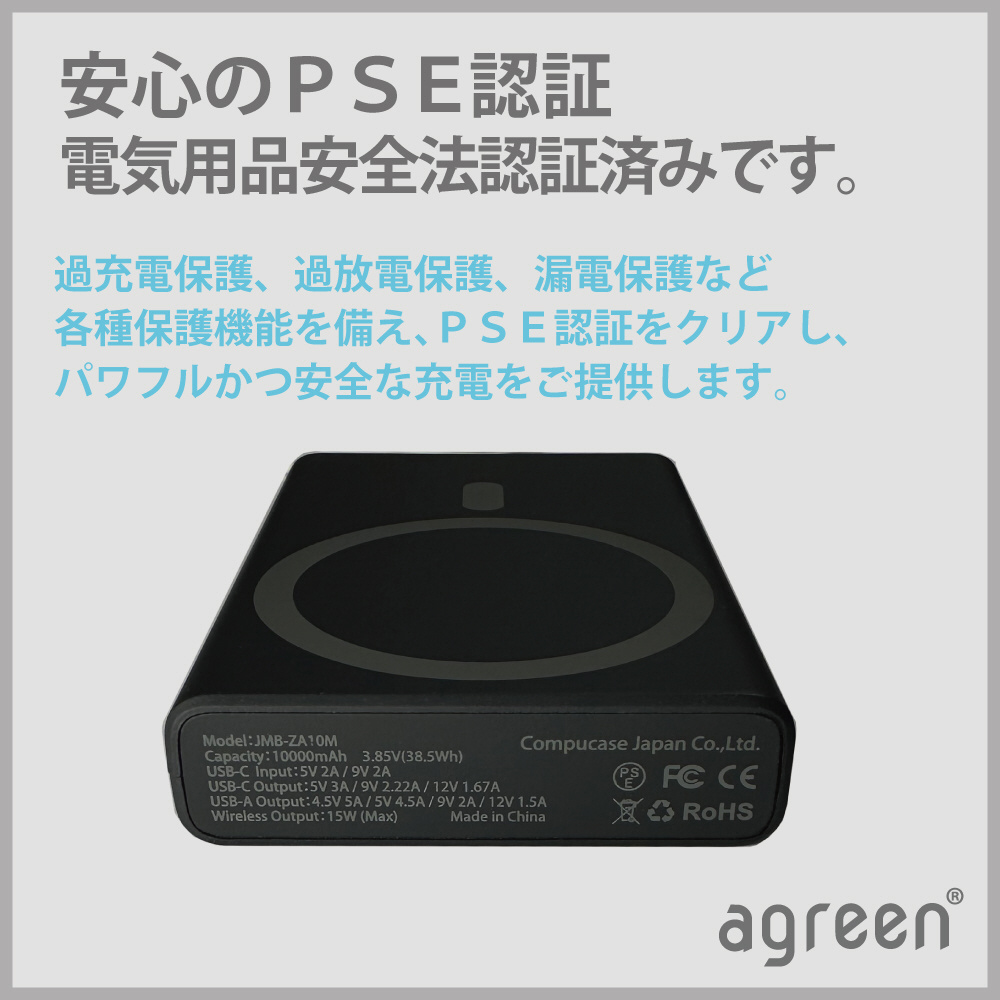 超薄型マグセーフ10000mAhモバイルバッテリー(PD20W) 付属ケーブル:A to Type-C ブラック JMB-ZA10M-BK