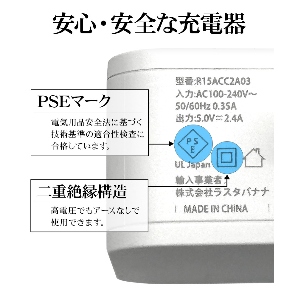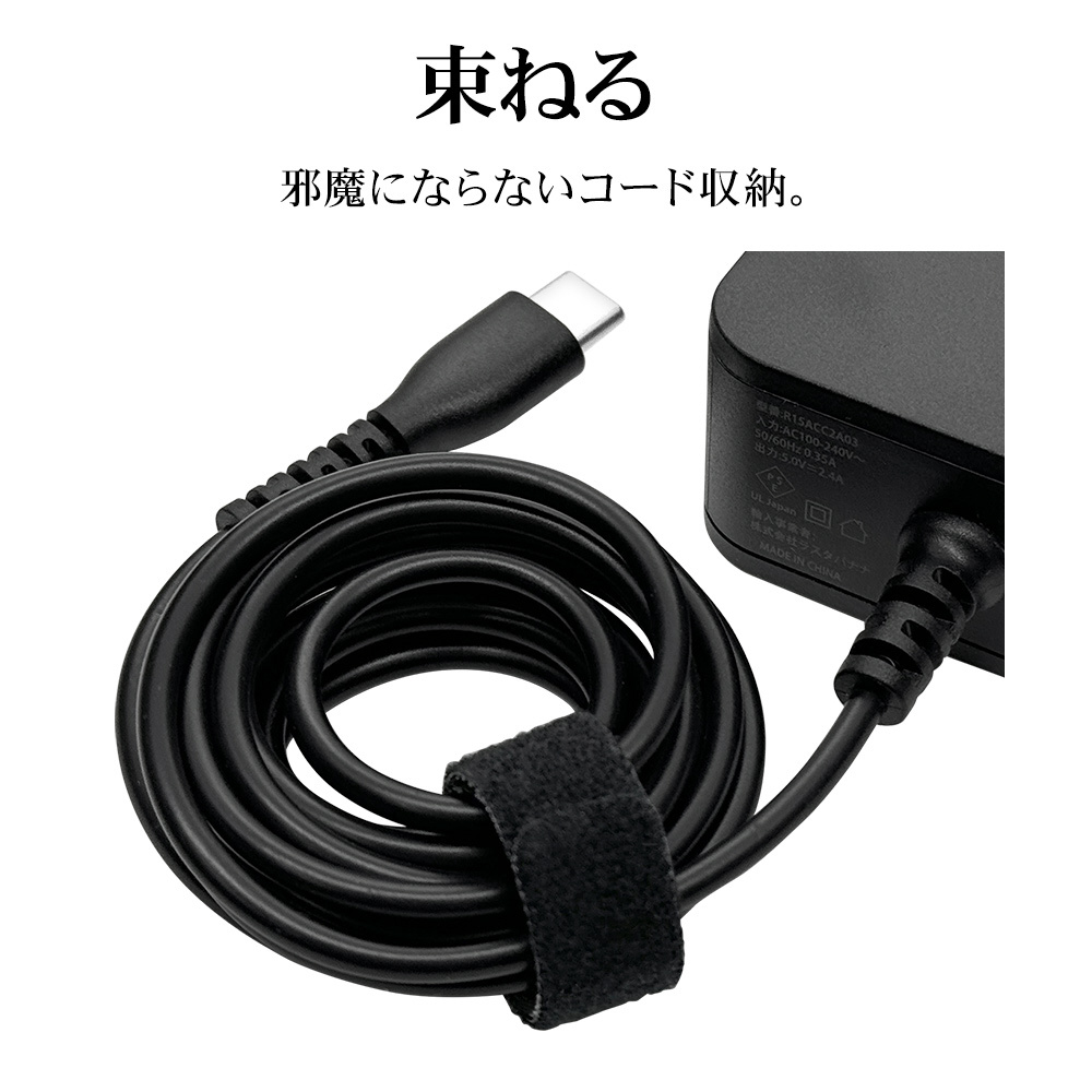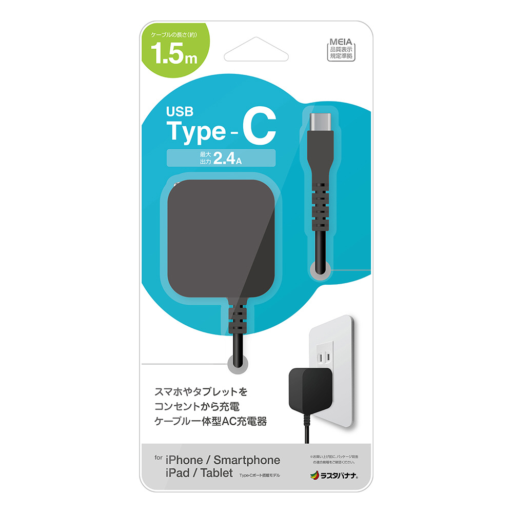 AC充電器 ケーブル直付 Type-C 2.4A 1.5m ブラック R15ACC2A03BK