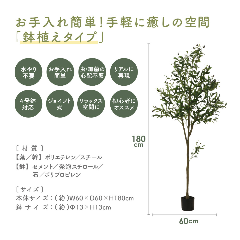 フェイクグリーン 180cm ジョイント オリーブ 41122