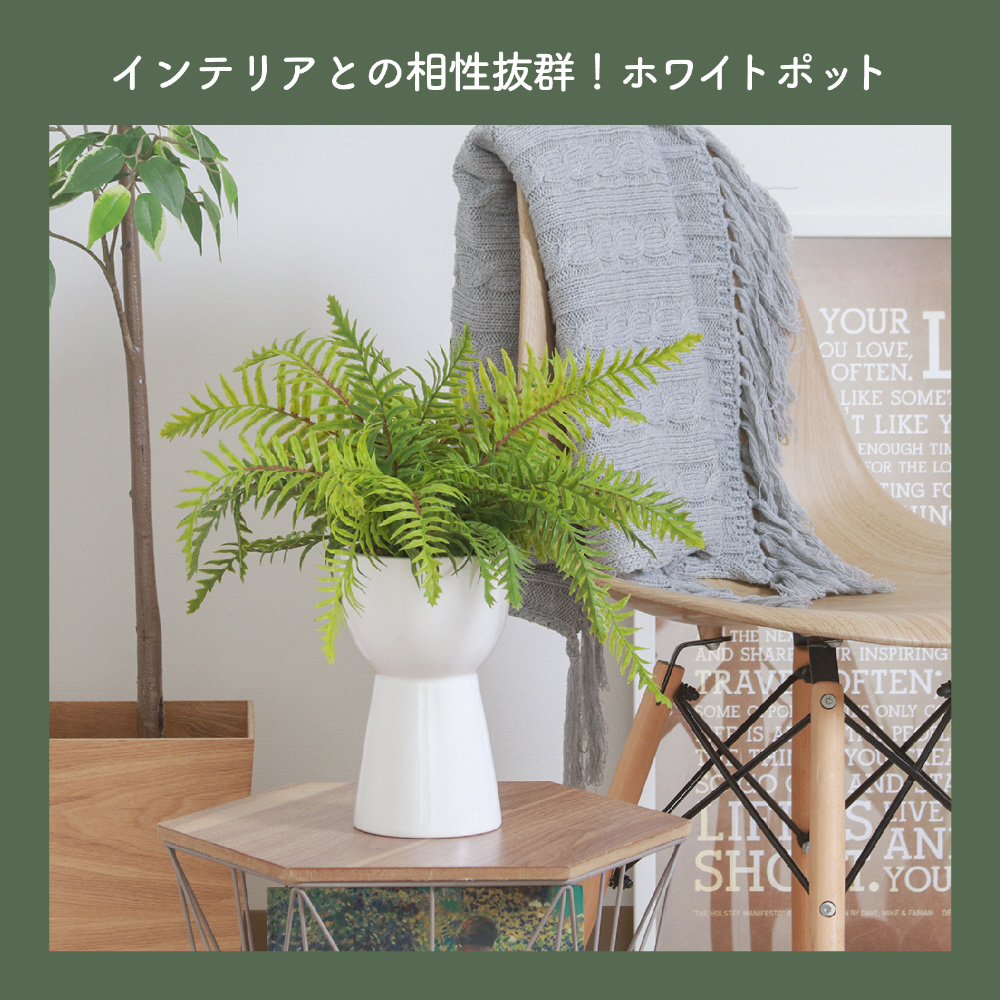 グリーンをやわらかく引き立てる丸みのあるホワイトポットはどんなインテリアとも相性抜群!