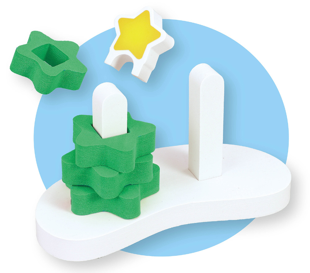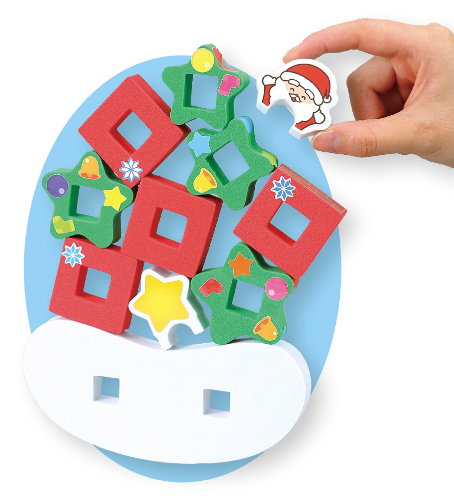 バランスゲームと棒通し遊びができる、やわらかい素材のおもちゃです。
