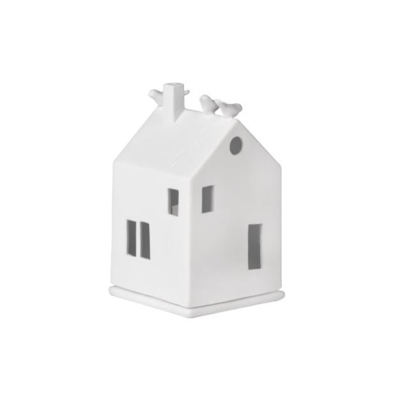 屋根に小鳥の装飾が施された磁器製のハウス型キャンドルホルダー。