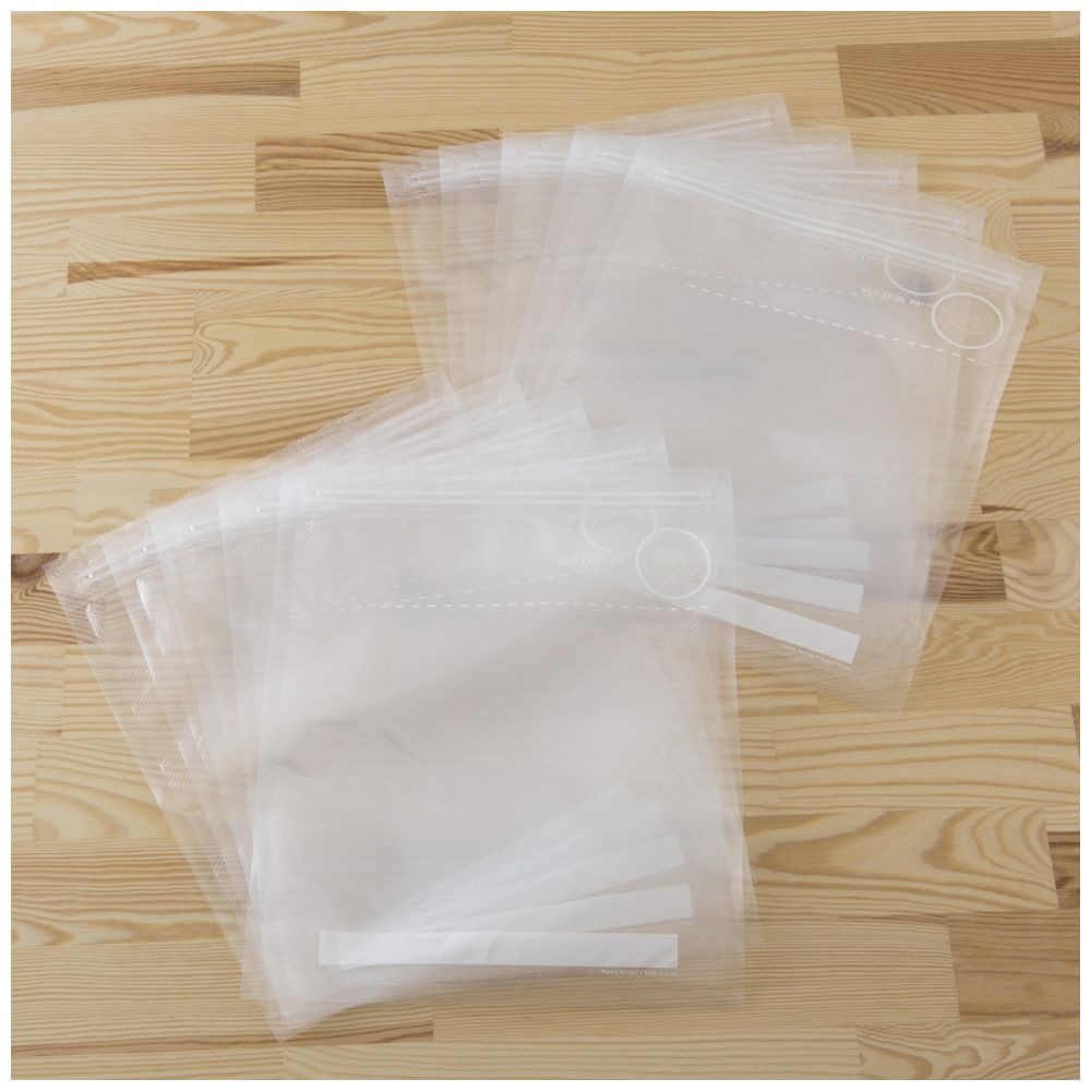 ●専用の真空ポンプが付いた別売りの「真空保存袋スターターセット」とご一緒にお買い求めください。