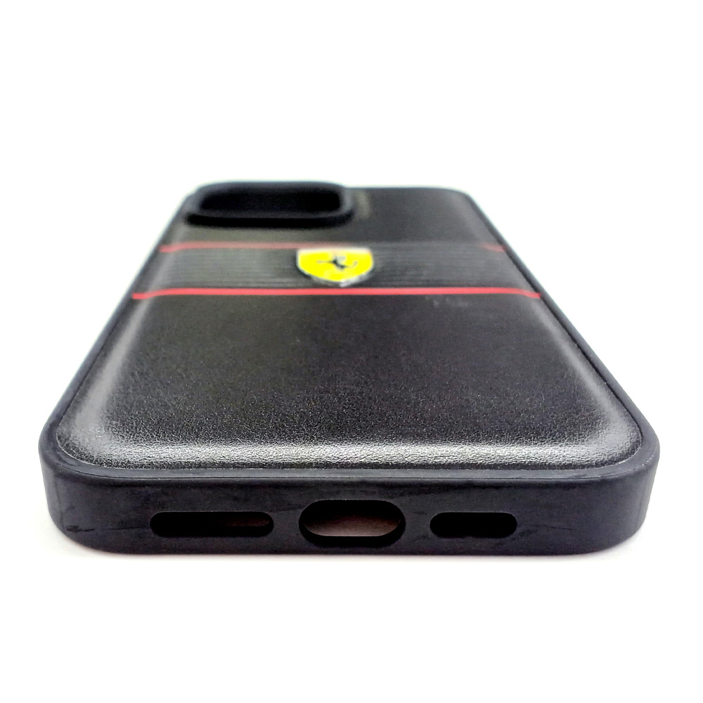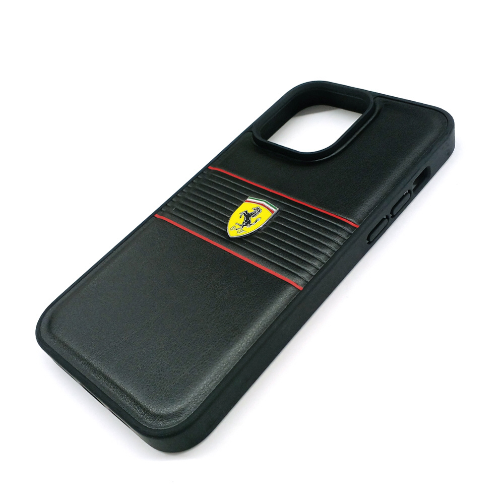 iPhone15 Pro Max用 フェラーリ PUレザー 背面ケース ブラック FEHCP15XPBOK